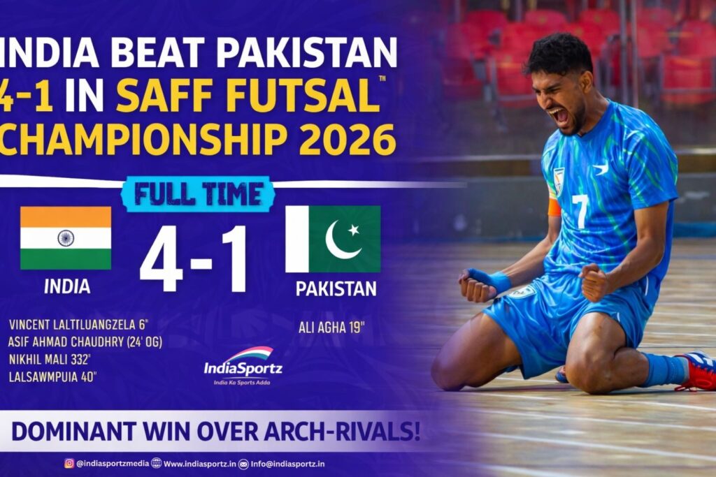 The Indian Men’s Futsal Team produced a commanding performance to defeat arch-rivals Pakistan 4–1 in the SAFF Futsal Championship 2026, delivering a statement win on the international stage.