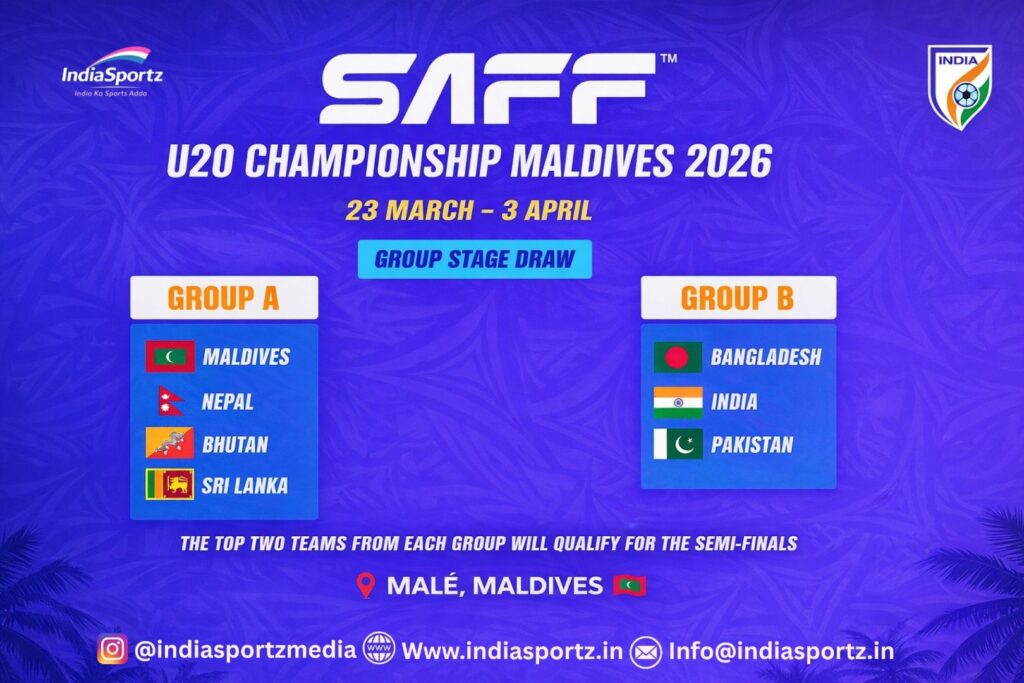 The SAFF U-20 Championship 2026 is all set to kick off in Malé, Maldives, from 23 March to 3 April 2026, and the group stage draw has officially been announced. India have been placed in Group B, where they will face tough competition from Bangladesh and Pakistan.