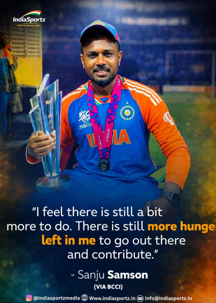 Despite achieving major milestones in international cricket, Sanju Samson remains deeply motivated. His statement reflects a mindset focused not on past achievements, but on continuous improvement and contribution to the team.